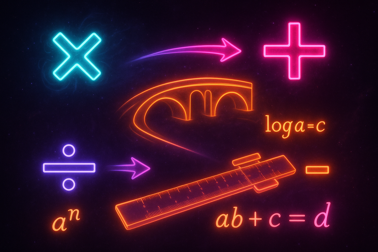- Multiplication → Addition: log(a × b) = log(a) + log(b)
